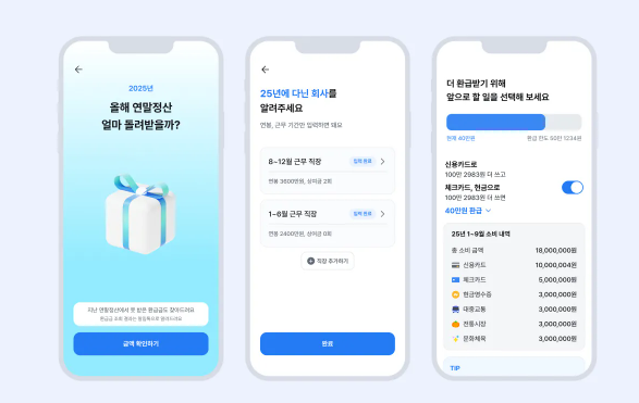 연말정산 미리보기에서는 근로자의 총급여, 이미 원천징수된 세액, 그리고 신용카드 등 사용 금액을 기반으로 예상 세액을 산출해 줍니다. 특히 신용카드, 체크카드, 현금영수증 사용 비율에 따라 공제 효과가 어떻게 달라지는지 한눈에 확인할 수 있습니다.