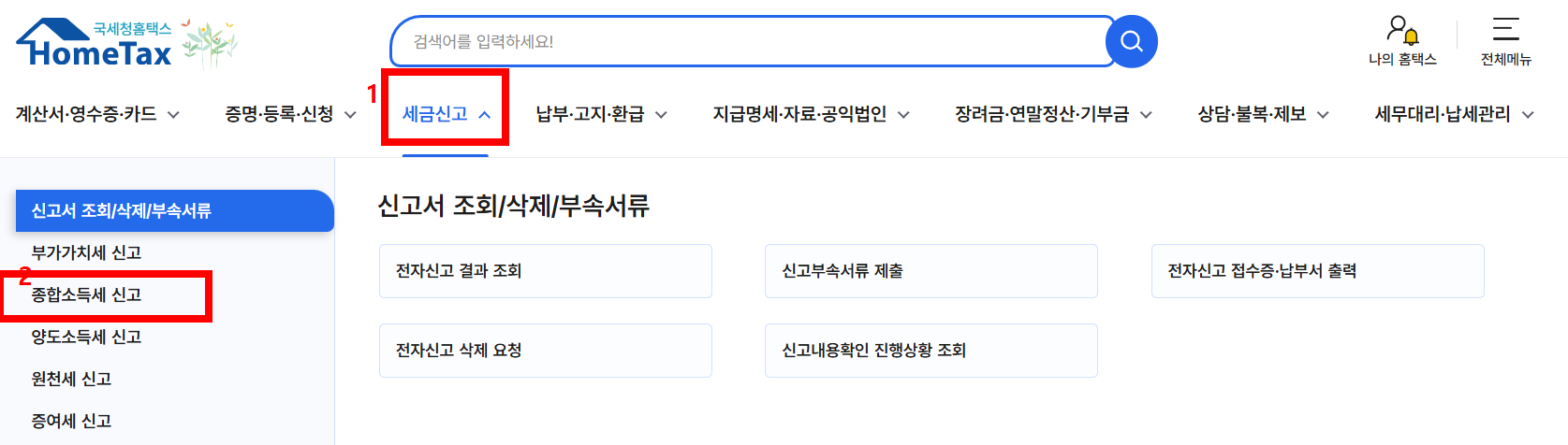 2) 로그인 후 '종합소득세 신고' 메뉴 선택