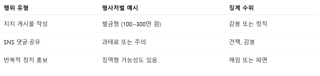 댓글 참여도 ‘공적 발언’으로 해석될 수 있으며, 특정 후보에 대한 긍정·부정 모두 위험 요소.