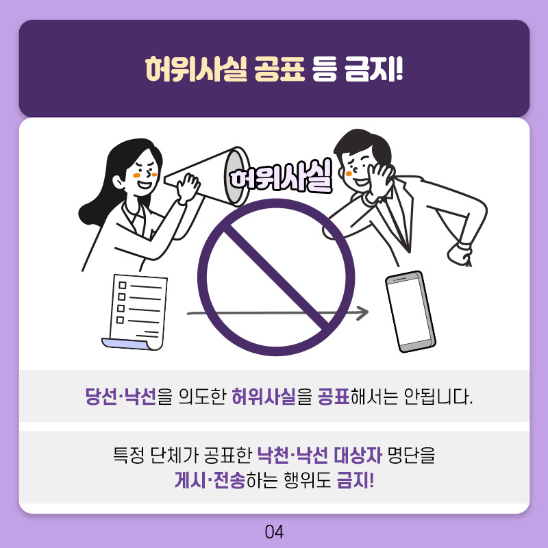 → 공무원은 선거에 있어 중립을 지켜야 하며, 특정 후보자나 정당을 지지하거나 반대하는 행위를 해서는 안 됩니다.