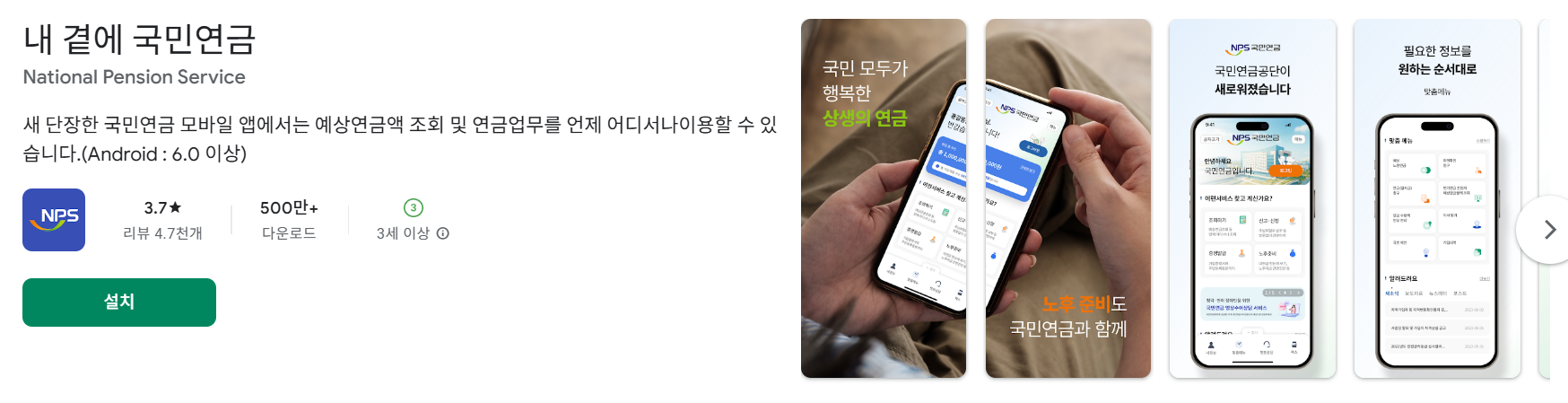 - 앱스토어 또는 구글플레이에서 ‘내 곁에 국민연금’ 검색 후 설치