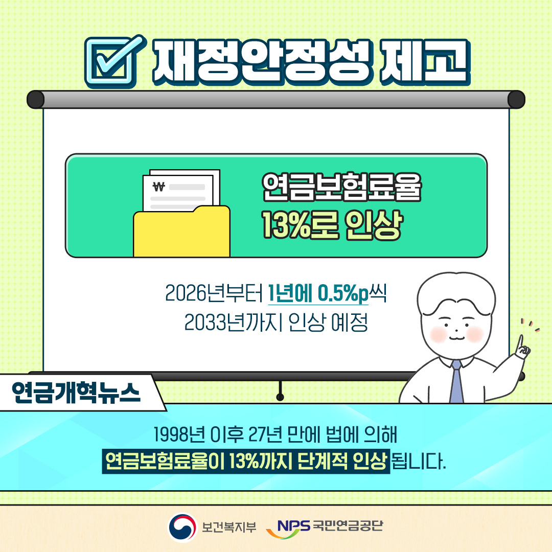 전문가들은 최소 12~15%까지 점진적 인상해야 재정 안정이 가능하다고 보고 있습니다.