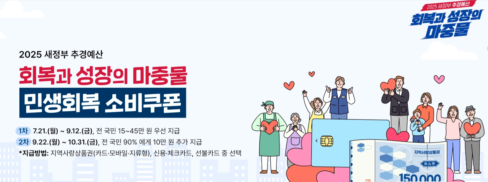 민생회복 소비쿠폰은 두 차례에 걸쳐 단계적으로 지급됩니다.
